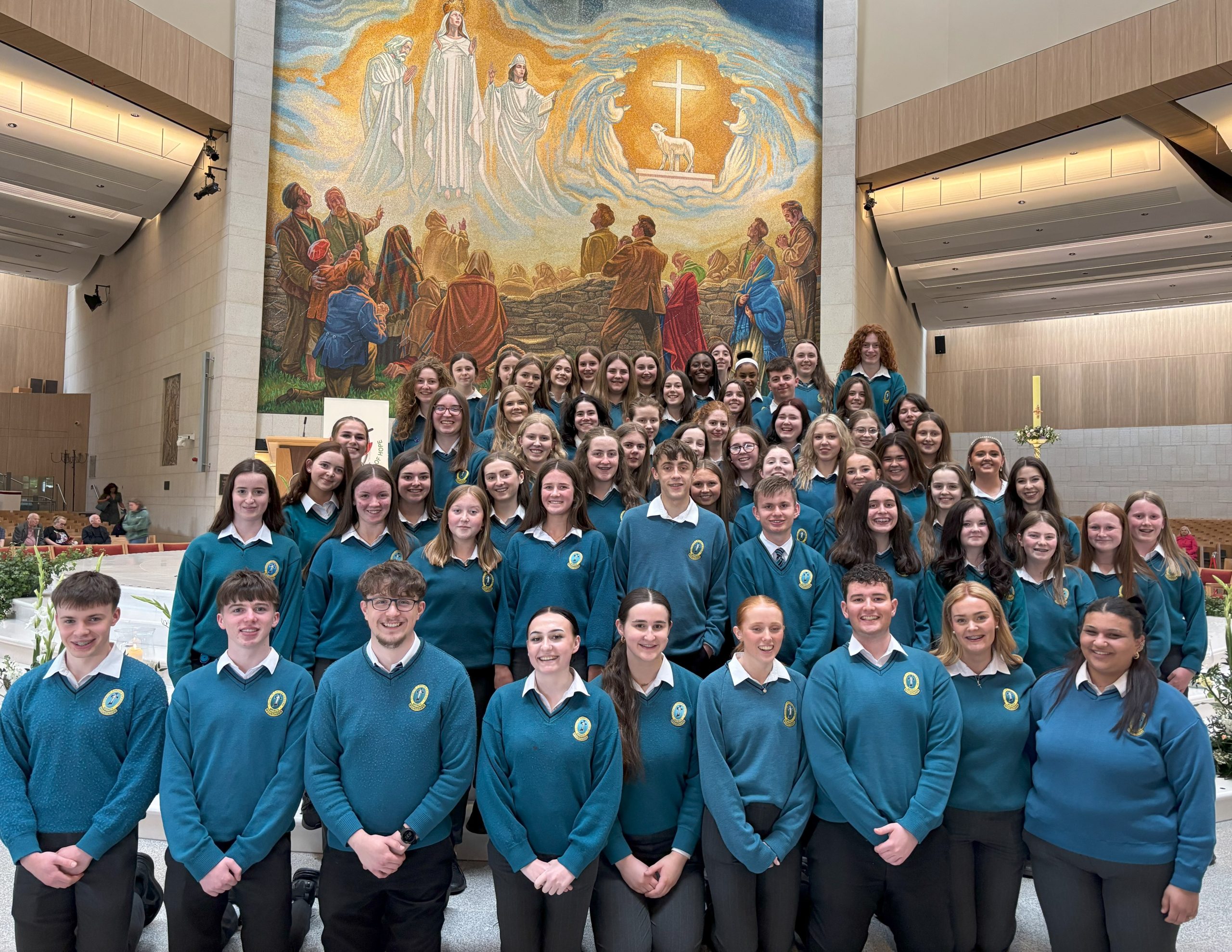 On Friday the 11th May, the choir travelled to Knock, Co Mayo to perform at the Donal Walsh fifth anniversary mass. It was an honour to be asked to sing at such an occasion and we practiced over many weeks under the guidance of our music teachers Ms. Muldoon Walsh, Ms. O’Sullivan and Ms. O’Carroll. The mass was celebrated by the Papal Nuncio and the Bishop of Kerry. There were many other priests in attendance as well as schools from all over Ireland. The choir performed very well and received many compliments on their beautiful singing and the performance of the musicians and soloists.