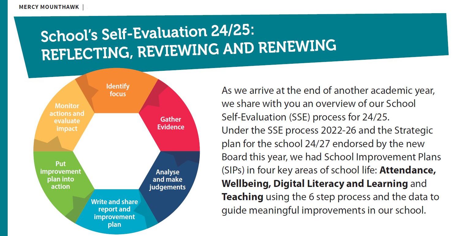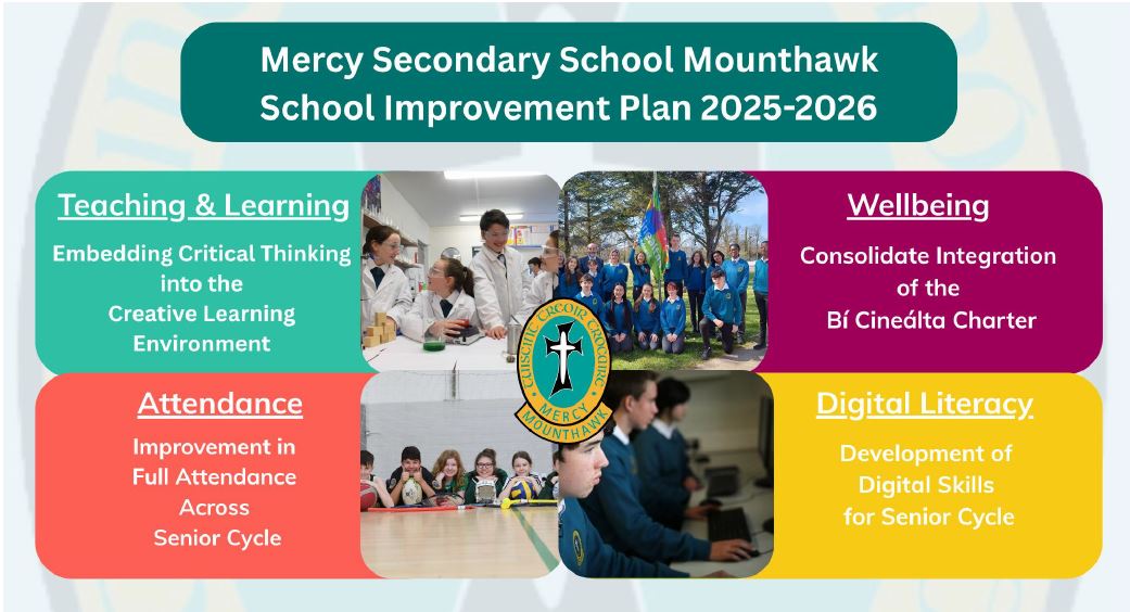 This page carries a series of reports on the School Improvement process in Mercy Secondary School Mounthawk and updates on School Improvement Plans.