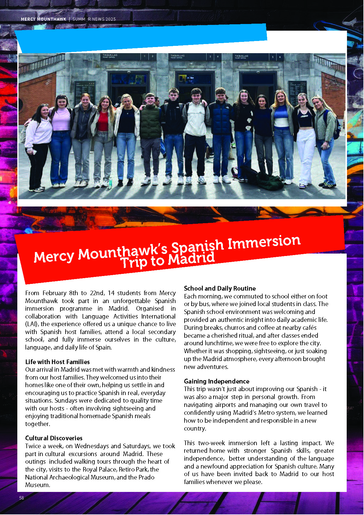 The second years have travelled to many parts of Europe over the past few years including France, Italy, Germany, Spain and the UK. In recent years the 2nd year trip has focused on Spain and provides students with the opportunity to practice their language skills.